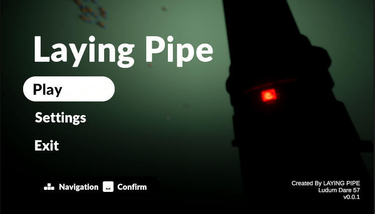 Note: This was a university project.Laying Pipe was developed in 72 hours for the Ludum Dare 57 game jam with a group of friends. The theme for the jam was Depths, and we decided to go with an eerie diving experience where you must descend into the depths of the ocean, repair a pipe along the way and uncover what happened to your colleague.